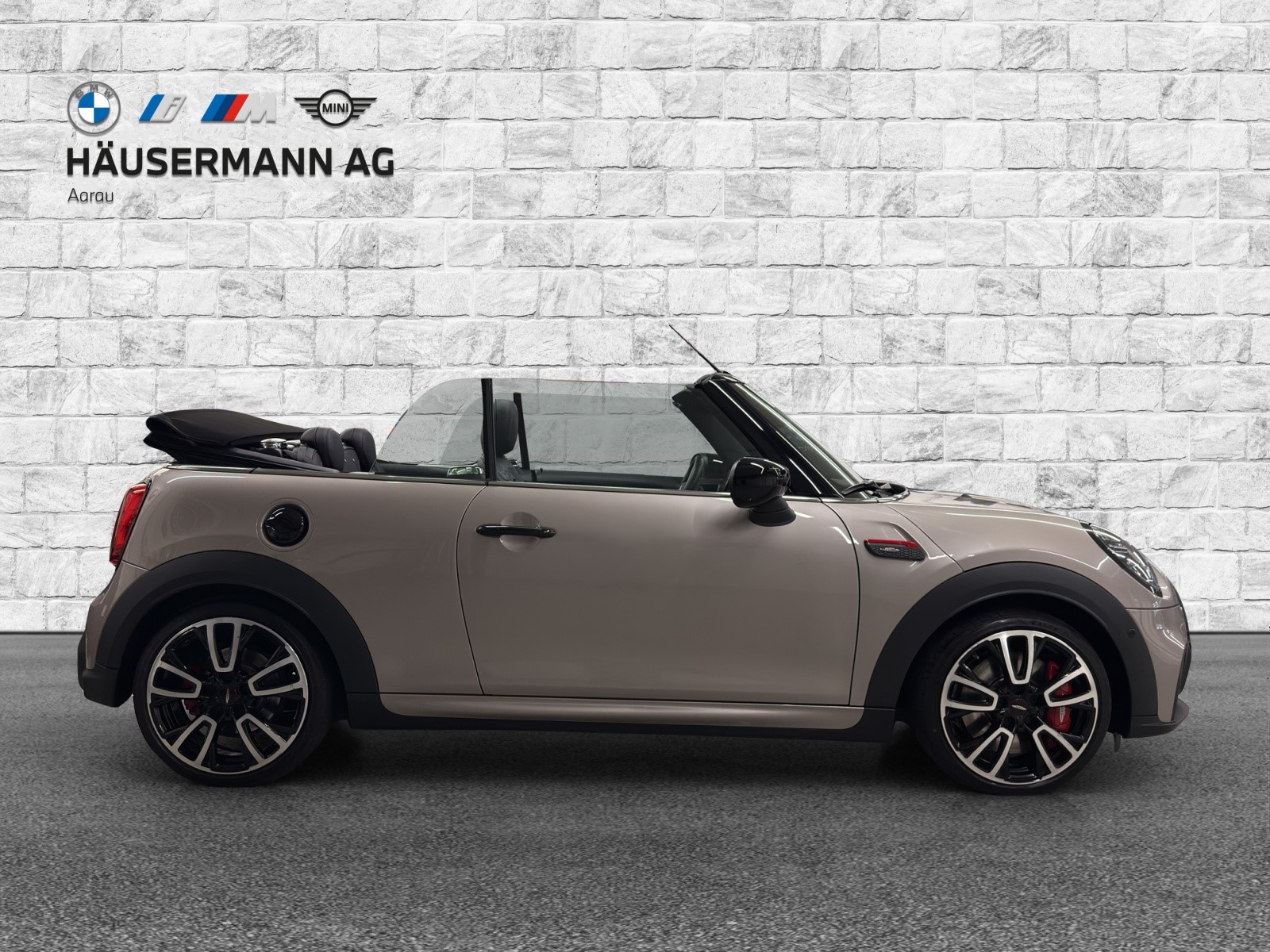3-Punkt-Sicherheitsgurte auf allen Plätzen, Ablagefächer in den Türverkleidungen und in der Mittelkonsole, Airbag: Airbag Fahrer und Beifahrer, Airbag: Kopfairbag vorne und hinten, Airbag: Seitenairbag für Fahrer und Beifahrer, Antiblockiersystem (ABS), Assist: Geschwindigkeitsregelung mit Bremsfunktion, Assist: Park Distance Control hinten, Auto Start-/Stop-Anlage, Bordcomputer, Cornering Brake Control (CBC), Crash-Sensor, Dekor: Interieuroberflächen Piano Black, Dynamische Bremsleuchten, Dynamische Stabilitätskontrolle (DSC), Dynamische Traktionskontrolle (DTC), Einstiegsleisten, Fensterheber elektrisch, Garantie: 3 Jahre oder 100000km Gewährleistung (Es gilt das zuerst erreichte), Getriebe: 8-Stufen-Sportautomat Steptronic, Getränkehalter, 2 vorne, Handschuhfach, Heckscheibenheizung, ISOFIX Kindersitzvorrichtung, Innenraumbeleuchtung, Katalysator geregelt, Klima: Klimaanlage, Kopfstützen, alle Sitzplätze, Lackierung: Metallic-Lackierung Moonwalk Grey, Lenkrad: Lenkrad längs- und höhenverstellbar, Lenkrad: Multifunktion für Lenkrad, Licht: LED Scheinwerfer, Licht: Nebelschlussleuchte, Licht: Tagfahrlicht, Media: DAB+ (Digital Audio Broadcasting), Media: Radio MINI Visual Boost, Media: USB-Anschluss, Pollenfilter (Staubfilter), Polster: Dinamica-/ Stoffkombination, Räder: 17" Leichtmetallräder John Cooper Works Track Spoke black, Räder: Reifendruckanzeige, Scheibenwaschdüsen beheizt, Scheibenwischer vorne mit Regensensor und automatischem Einschalten der Abblendlichter, Servotronic, Sitze: John Cooper Works Sportsitze, Sitze: Kindersitzbefestigung ISOFIX Beifahrersitz, Sitze: Rücksitzlehne, umklappbar, Sitze: Vordersitze höhenverstellbar, Sonnenblende Fahrer und Beifahrerseite mit Spiegel, Start-/Stop-Knopf, Steckdose 12V, Verdeck schwarz, Vollautomatisches Verdeck, Warndreieck, Wegfahrsperre elektronisch, Weisse Blinkleuchten, Wärmeschutzverglasung, Zentralverriegelung mit Fernbedienung, Überrollschutzsystem